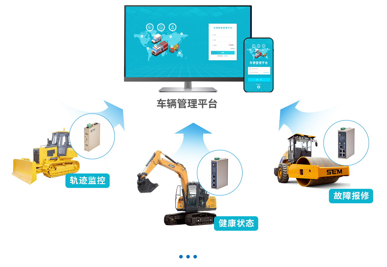通告物通博聯的車載智能網關,實時采集車輛的位置信息(通過 GPS 模塊)、運行狀態參數(如發動機轉速、油壓、水溫、車速等)、作業動作數據(如挖掘機的挖掘深度、角度等)。將采集到的數據通過網關傳輸至車輛管理平臺。平臺對車輛位置進行實時追蹤,在地圖上直觀展示車輛分布和行駛軌跡。通過對運行狀態參數的監測,當車輛出現異常或可能發生故障時及時預警,并提供故障診斷和維修建議。同時,監督工程車的作業行為是否規范,如是否超速、是否違規操作等。平臺還具備油耗與效率分析功能,幫助用戶了解車輛的能耗情況和作業效率,以便進行優化調度。用戶可通過平臺遠程對車輛進行調度和管理,如發送任務指令、調整行駛路線等。