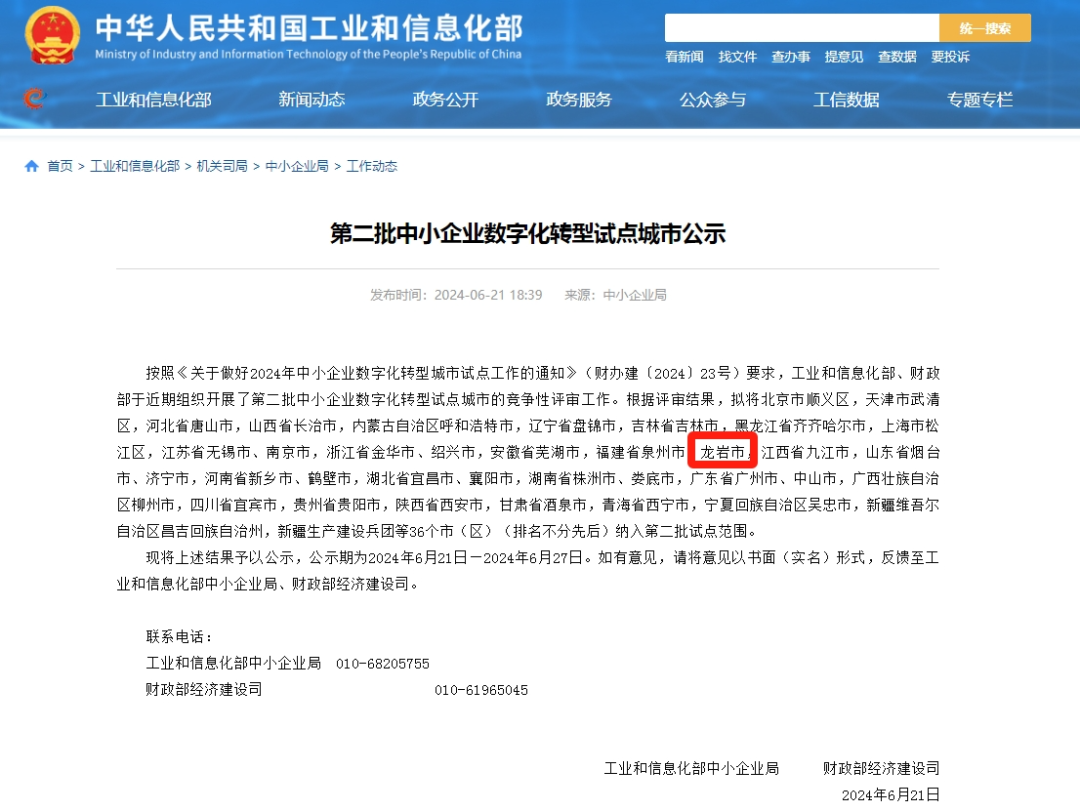 龍巖市是第二批中小企業(yè)數字化轉型試點城市,6月21日工信部、財政部對入選第二批中小企業(yè)數字化轉型試點城市名單進行公示,龍巖入選。標志著龍巖市在推動中小企業(yè)數字化轉型上邁出堅定步伐,并獲得國家認可。中央財政將對入選地級市給予1億元獎補資金,主要用于支持中小企業(yè)數字化改造、工業(yè)互聯網平臺建設、數字化服務商培育,以及支持開展咨詢診斷、人才培訓、數字化轉型融資等。