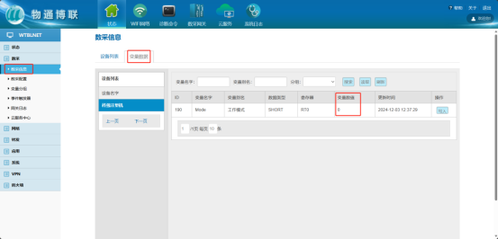 等待右下角彈出成功提示框后,點擊“數(shù)采信息”->“變量數(shù)據(jù)”,即可在“變量值”一列查看采集結(jié)果。