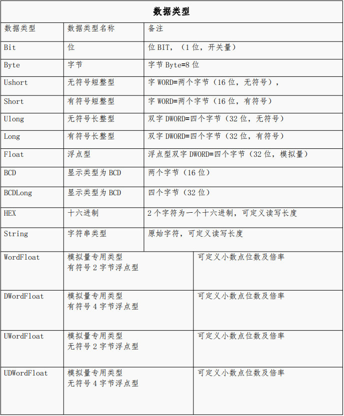 下載中心 視頻中心 常見問題 售后服務 工業網關 設備快線 數據云平臺 聯網設備 問答百科 網關支持采集的數據類型有哪些? 時間:2022-10-26 09:39:53 點擊:7594 關鍵詞:工業網關,數據采集,數據類型 問題:網關支持采集的數據類型有哪些? 回答:網關支持采集的數據類型如下表 : 上一篇:工業智能網關會運行時會自動重啟怎么處理? 下一篇: 網關采集modbus協議設備時,寄存器類型和地址如何選擇?
