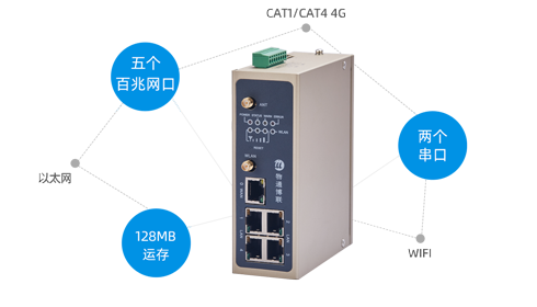 支持五個網口、兩個串口、支持5G RedCap、4G、WIFI、以太網等多種聯網方式接入