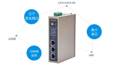 支持三個網口、兩個串口、支持5G Red Cap、4G、WIFI、有線以太網等多種聯網接入