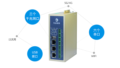支持三個千兆網口、10個串口(485/232)、一個USB接口、支持5G、4G、雙頻WIFI、有線以太網等多種聯網接入