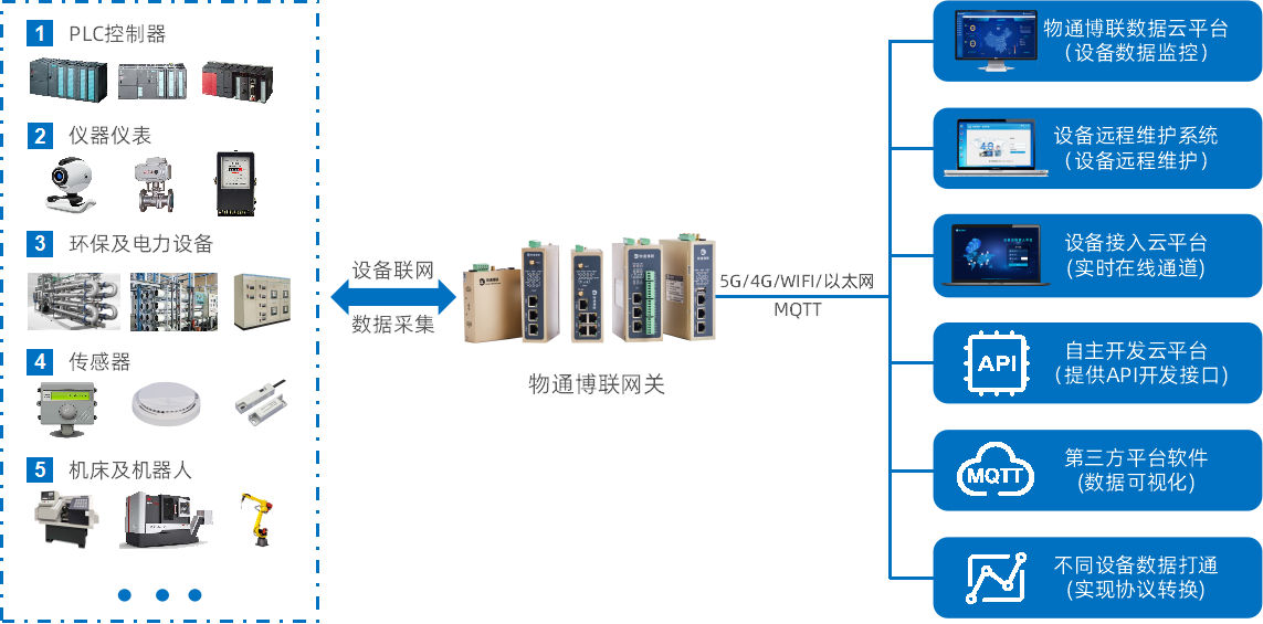 云端適配:支持接入物通博聯云、自主開發云平臺、主流第三方工業互聯網平臺