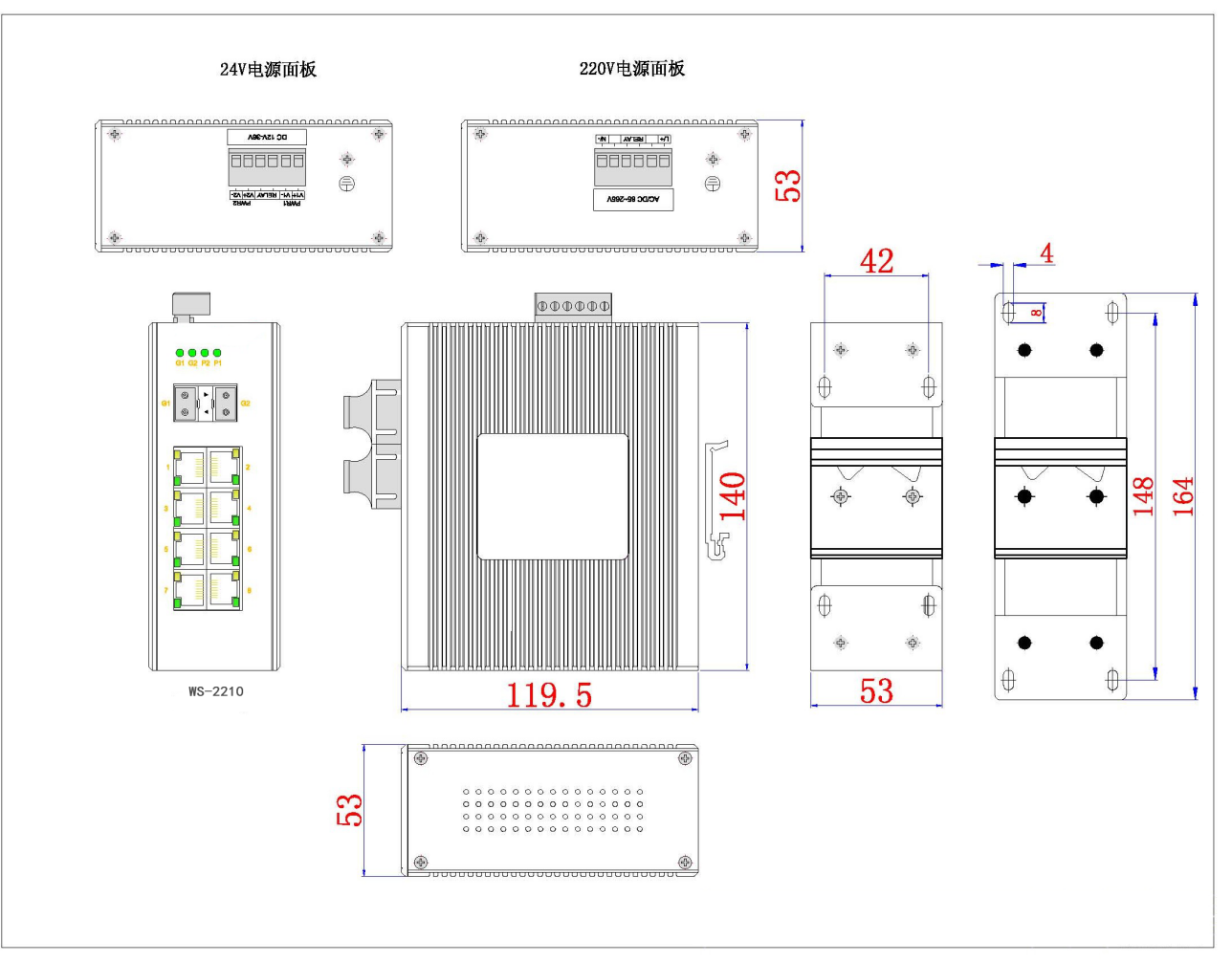 | WS2010M-2GS-8T | 8 | 2 | DC12/24V,AC/DC85~265V可選 |