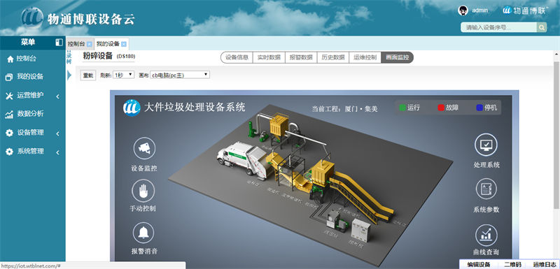 物通博聯(lián)處理垃圾設備物聯(lián)網(wǎng)為垃圾處理設備廠家實現(xiàn)全球設備統(tǒng)籌,打造一個安全監(jiān)控、設備遠程維護和管理、設備遠程調(diào)試、配件管理、故障告警為一體的垃圾處理設備綜合服務平臺,實現(xiàn)從“生產(chǎn)型制造”向“服務型制造”的轉型,提升生產(chǎn)效率、產(chǎn)品質(zhì)量和技術支持水平。