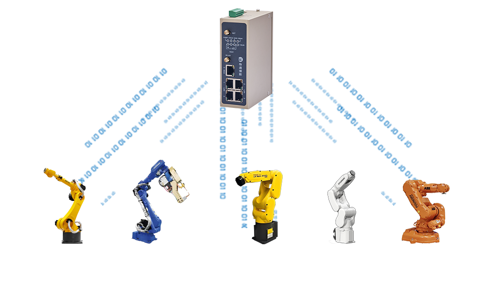 物通博聯機器人數采網關支持采集市面上大部分的機器人(機械手臂)設備(發那科、ABB、現代、安川、埃斯頓……等等)的運行狀態、工藝參數、故障信息、生產數據等數據,將數據接入工廠的MES系統、工廠的加工系統、數據庫及物聯網系統物通博聯云平臺、設備管理平臺等,實現機器人設備的遠程監控和運維,生產優化與數據分析,有助于提高生產效率、降低成本、保障生產安全。