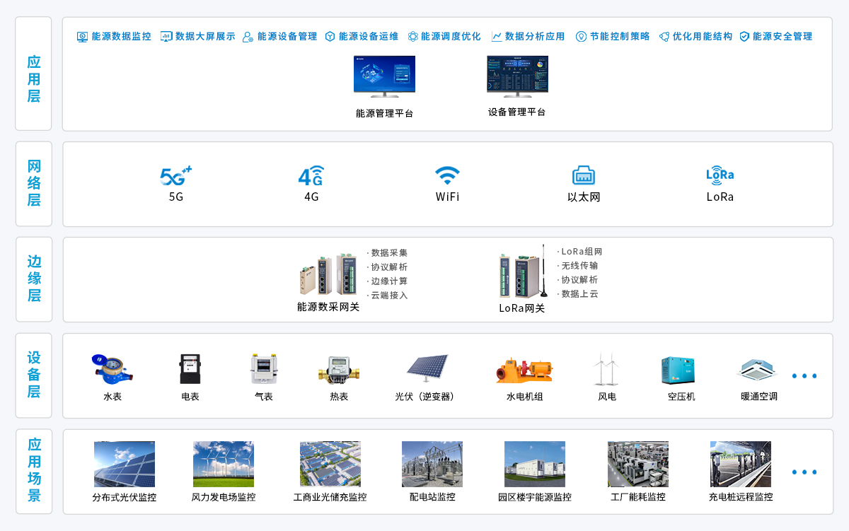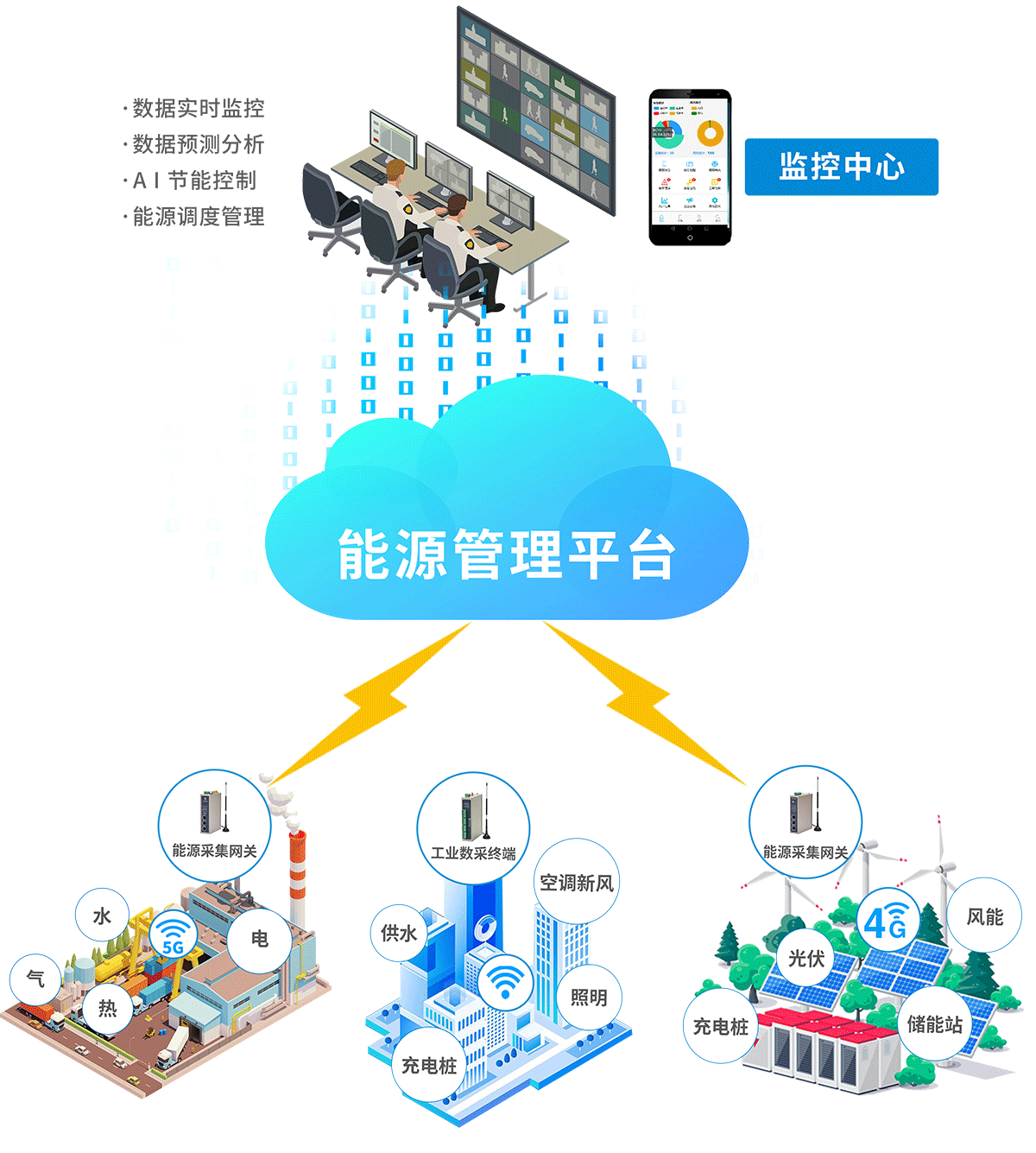 適用于工廠、園區、小區、電力、樓宇、公共設施等多種用能場景。
