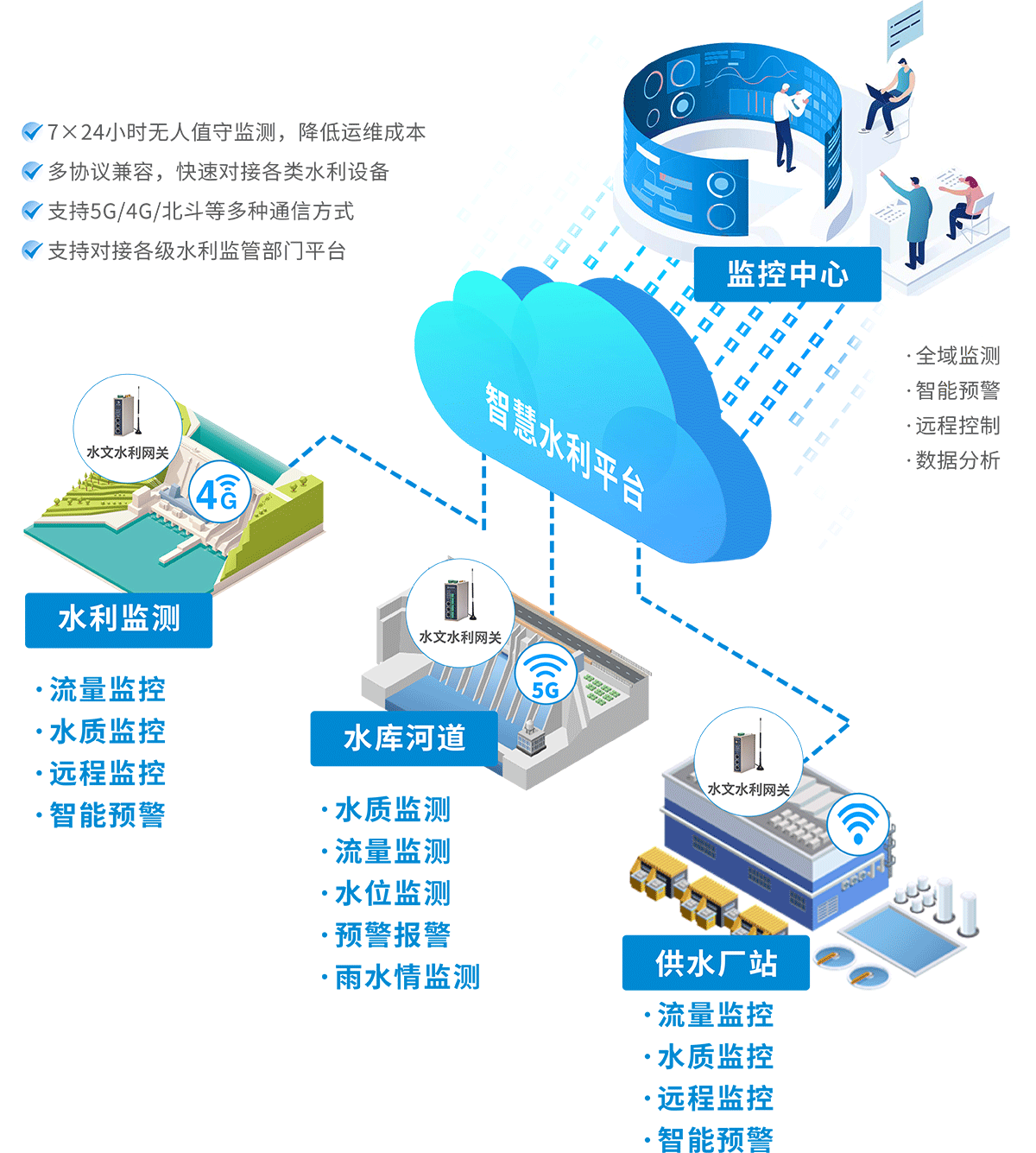 了解更多→針對智慧水利不同應(yīng)用場景,提供定制化的解決方案