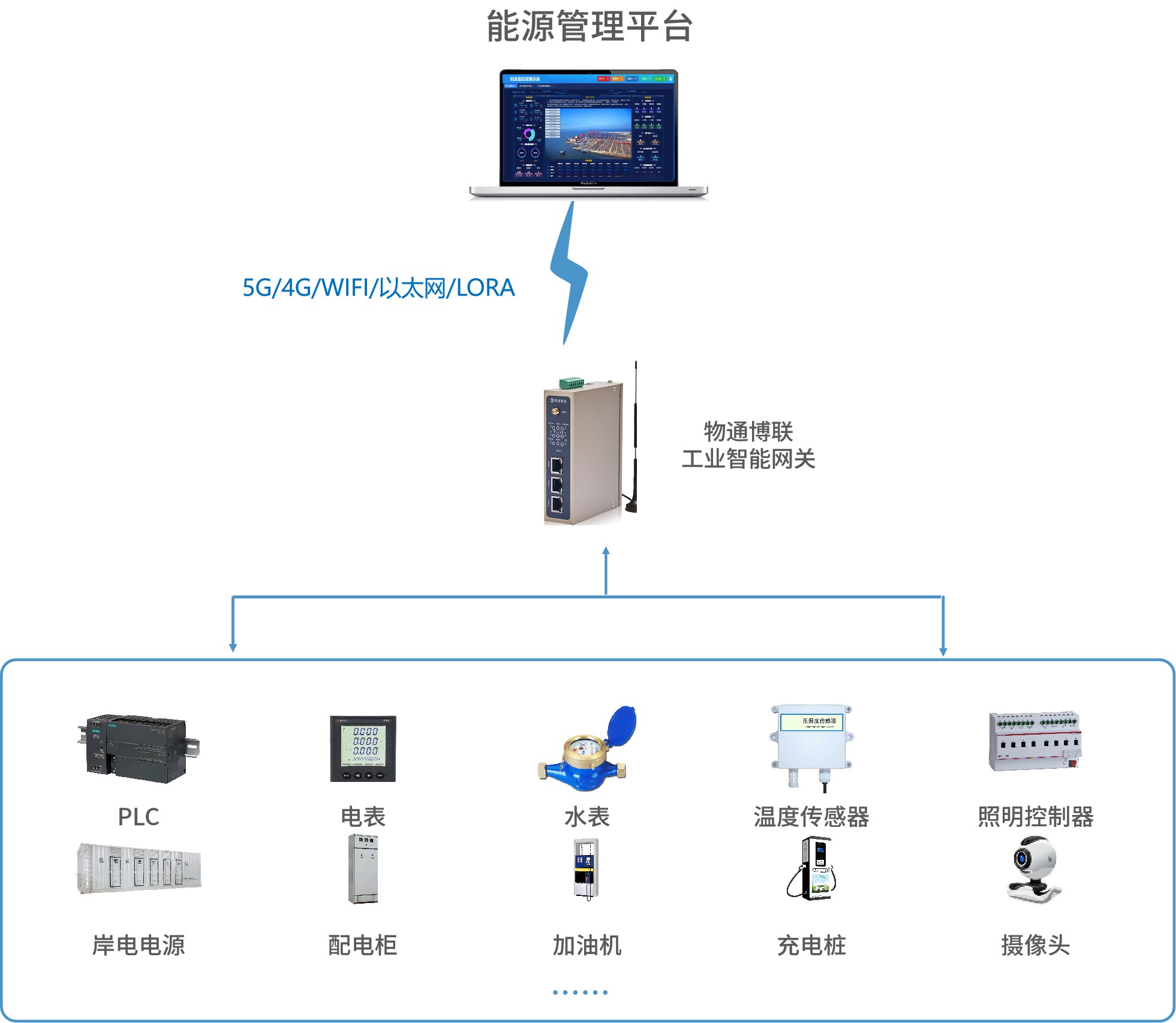 實(shí)時(shí)采集港口各類用能設(shè)備(起重機(jī)、堆高機(jī)、高桿燈、制冷設(shè)備等)的能耗數(shù)據(jù),并實(shí)時(shí)上傳至能源管理平臺(tái),管理人員能夠通過手機(jī)端電腦隨時(shí)查看能耗數(shù)據(jù)變化。