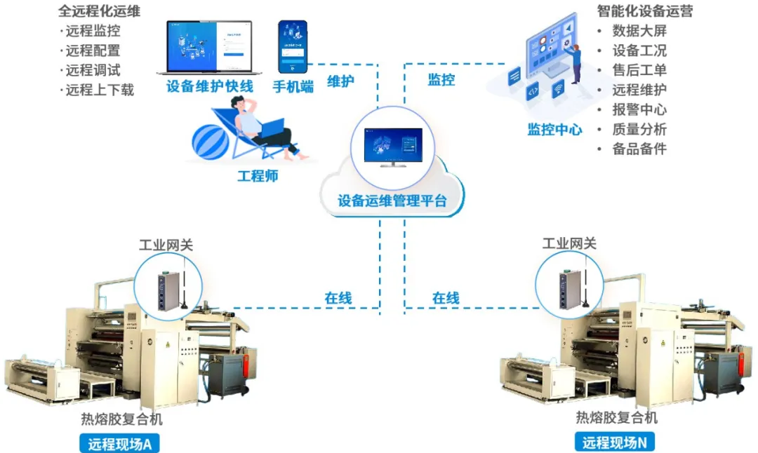 通過構(gòu)建熱熔復(fù)合機(jī)遠(yuǎn)程監(jiān)控智慧運(yùn)維系統(tǒng),企業(yè)能夠?qū)崿F(xiàn)設(shè)備的實(shí)時(shí)監(jiān)控與遠(yuǎn)程維護(hù),減少停機(jī)時(shí)間,保障客戶生產(chǎn)的連續(xù)性;同時(shí),通過數(shù)據(jù)整合分析,優(yōu)化運(yùn)維資源配置,降低人工與差旅成本,提升運(yùn)維效率;此外,還能助力企業(yè)迭代產(chǎn)品、優(yōu)化服務(wù),增強(qiáng)在熱熔復(fù)合設(shè)備領(lǐng)域的核心競爭力。